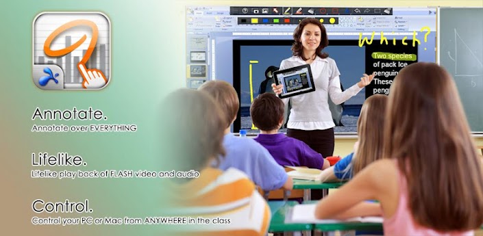 BE IN CONTROL – Have complete control over the applications such as Keynote or Powerpoint on the classroom PC as if you were sitting right there. No need to stay at the front of the class. Slowly reveal text or images to keep your audience focused using the Screen Shade tool. Or use the Spotlight tool to keep the attention on just one part of the screen. Be free to roam around – hand the Android tablet to a student and let their imagination do the rest!