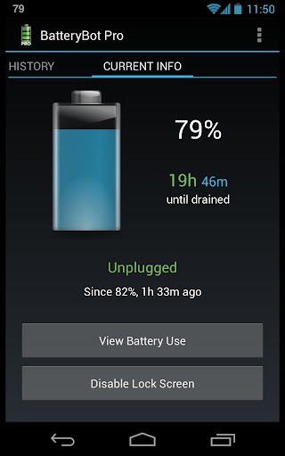 The original Battery Indicator for Android has been reborn with a new name, a new look, and new features! Battery Indicator Pro is now BatteryBot Pro. BatteryBot Pro is currently in beta, which means it is not finished and will be undergoing rapid development, with things changing frequently. It should not have any major issues, however, and I believe that it is already better than the old Battery Indicator Pro, so here it is. Please email me if you have any issues.